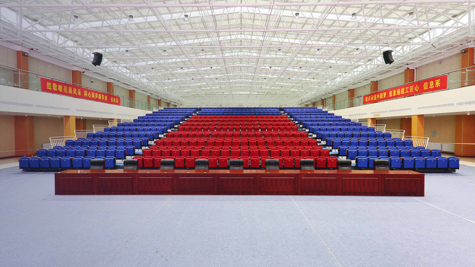 禮堂座椅多數(shù)由椅座、椅背、扶手、站腳、寫字板構成。一般情況組成結構一般為鋼木結構或鋼塑結構。適用在禮堂、影劇院、會堂、報告廳等場所。在使用時應有良好的視線,便于維修和清掃,使用時應舒適,使人不易疲勞。